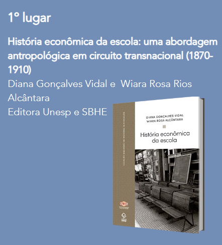 Recebemos das Profas. Dras. Wiara Alcântara, Diana Gonçalves Vidal e Terciane Luchese a notícia de que o livro “História econômica da escola: uma abordagem antropológica em circuito transnacional (1870-1910)”, de autoria das professoras doutoras Diana Gonçalves Vidal e Wiara Rosa Alcântara, obteve o primeiro lugar na categoria Ciências Humanas, da 11ª edição do Prêmio ABEU – Associação Brasileira das Editoras Universitárias. O livro integra a coleção Diálogos em História da Educação, parceria da SBHE com a Editora Unesp.