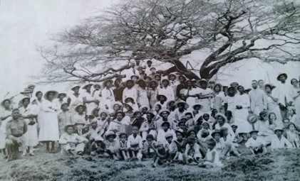A fotografia em tela ilustra como a educação estava presente na vida social do clube. Apesar da imprecisão em relação à data do evento, os ramos e galhos despidos de folhas da grande árvore e os chapéus das pessoas presentes sugerem que se tratava de um dia ensolarado. A banda do clube ocupa a centralidade do registro, assim como as crianças, em registro de um instante aparentemente alegre de piquenique dos associados. Assim como ocorria nas demais as atividades culturais do clube, os pequenos estavam presentes, o que aponta para a preocupação dos sócios com os espaços destinados à infância nas atividades de sua agremiação.